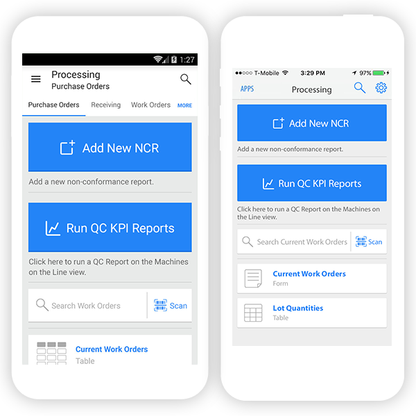 Problem: Between TrackVia’s mobile dashboards on iOS and Android, they felt like two completely different products. On iOS, thumbnail previews bogged down the load time of the dashboard. On Android, valuable space was wasted on large icons with no descriptive information for the user to discern between various dashboard items. Solution: I produced a card-based design for the new mobile dashboard interface. Dashboard elements would now display an element type (Form, Pie Chart, etc.) as text to better inform the user when navigating to their desired location. Additionally, shortcuts were now configurable via the web application, so users required large kiosk-like buttons to quickly initiate their primary workflow with one tap.